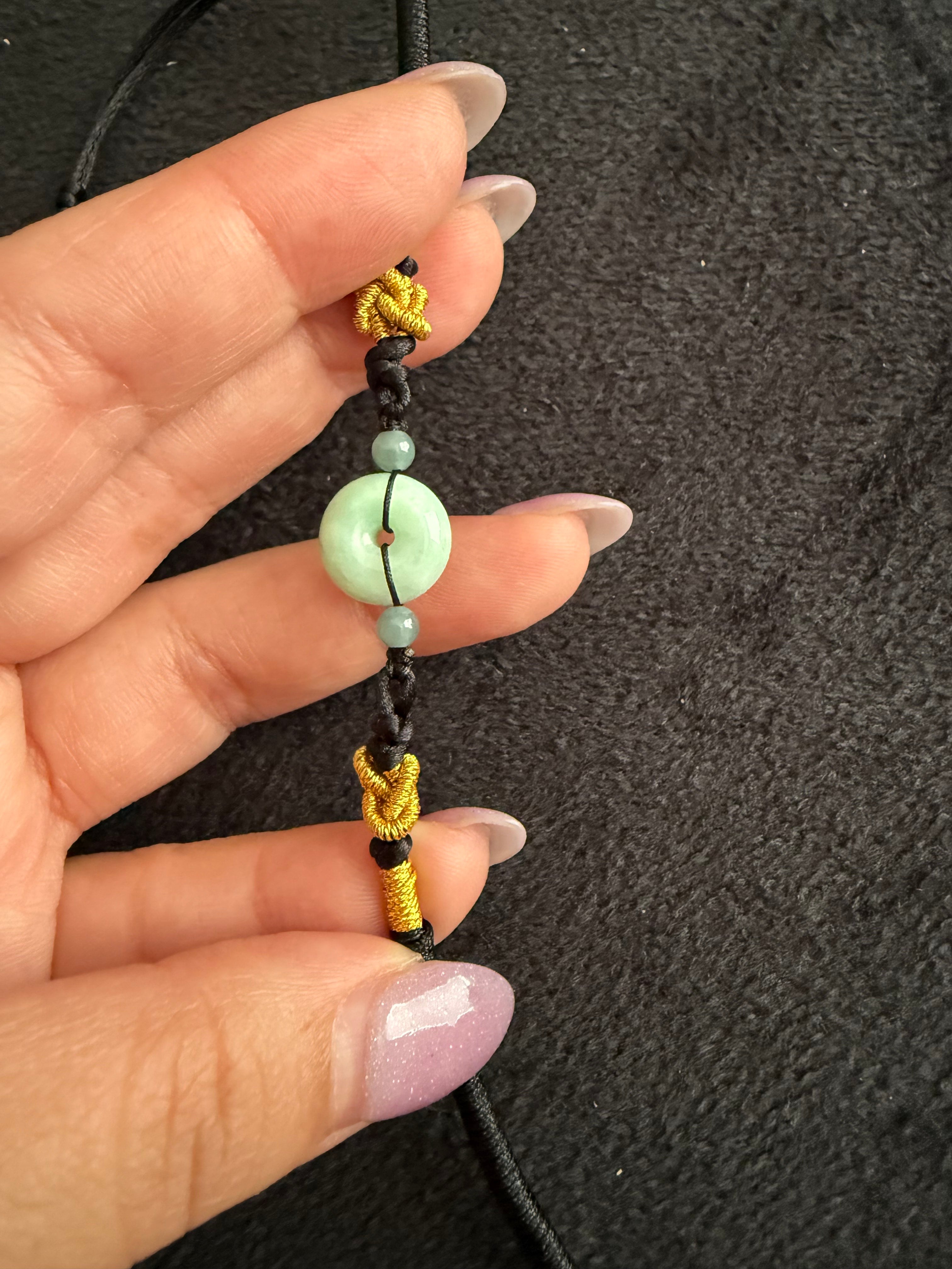 Genuine Burmese Jade on Black and Gold Hand-Tied Adjustable Cord