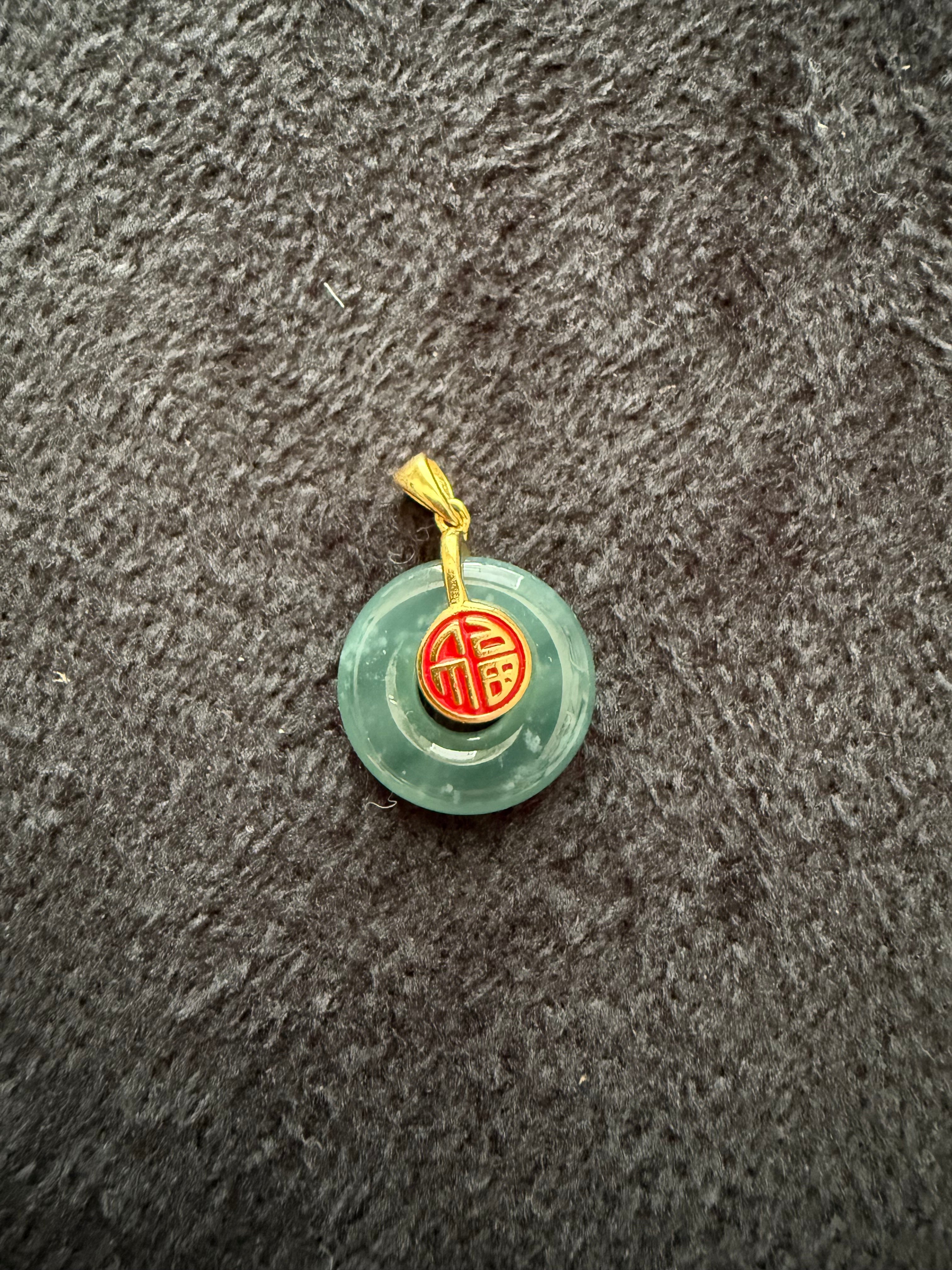 Gold Vermeil Blue Water Jade Fortune Pendant