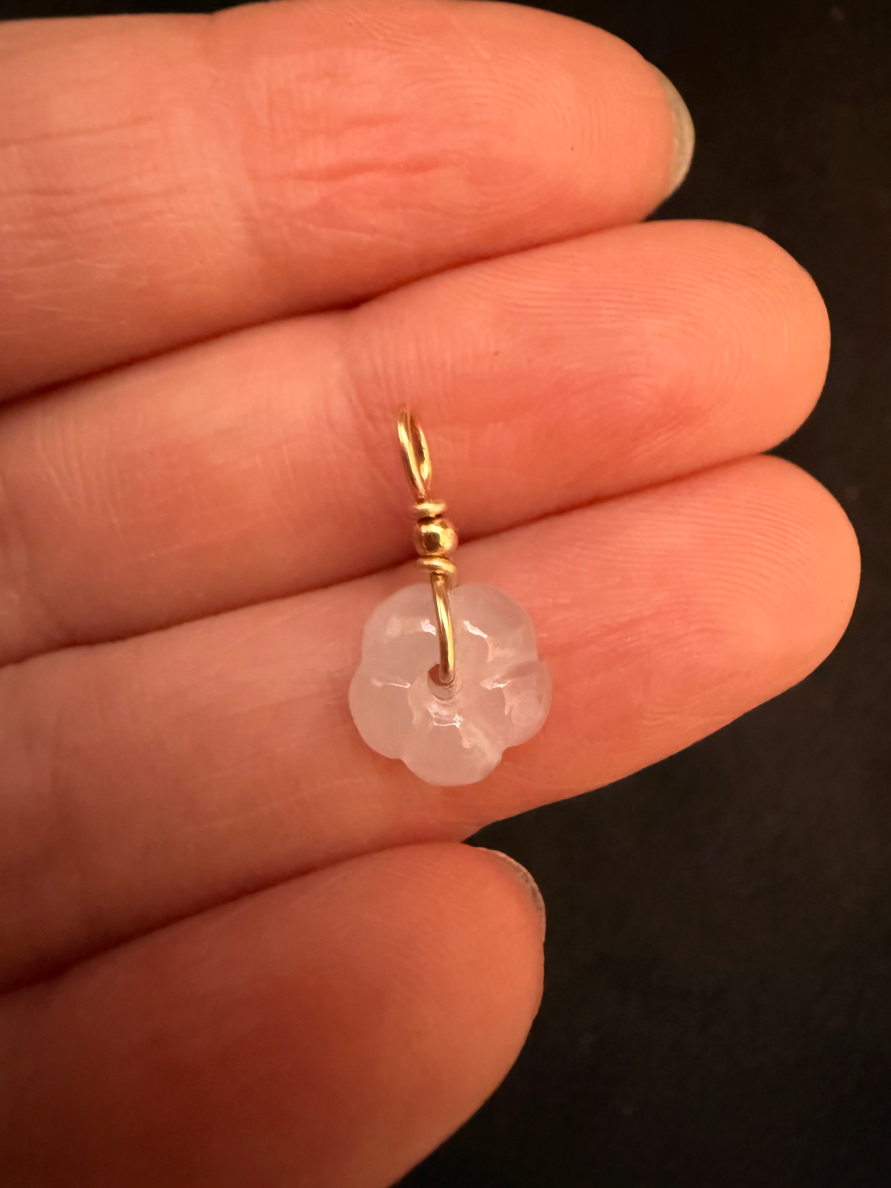 White Burmese Jade Flower Charm – Gold-Filled Wire