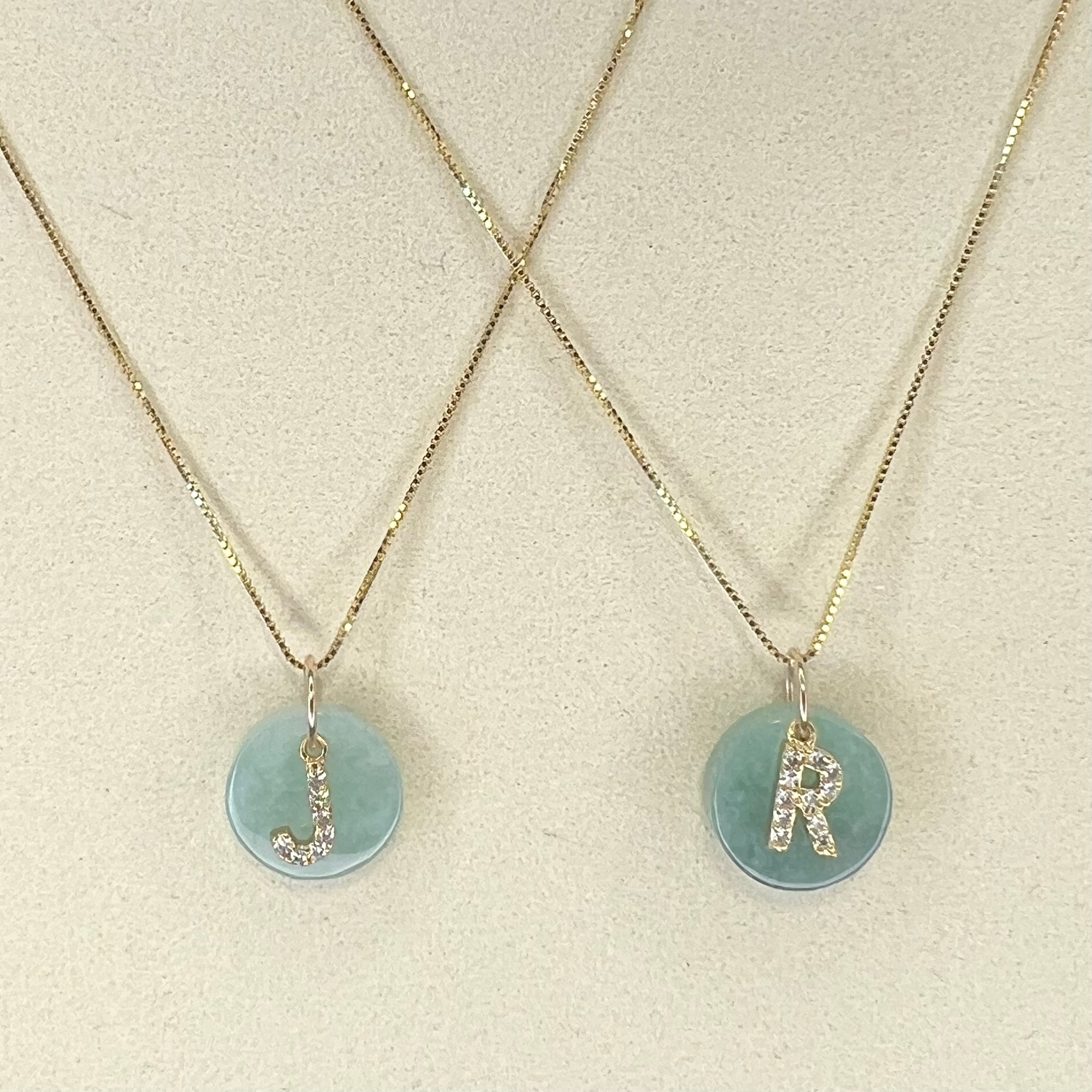 - Perfect for a gift, these initial pendants are paired with jade circles